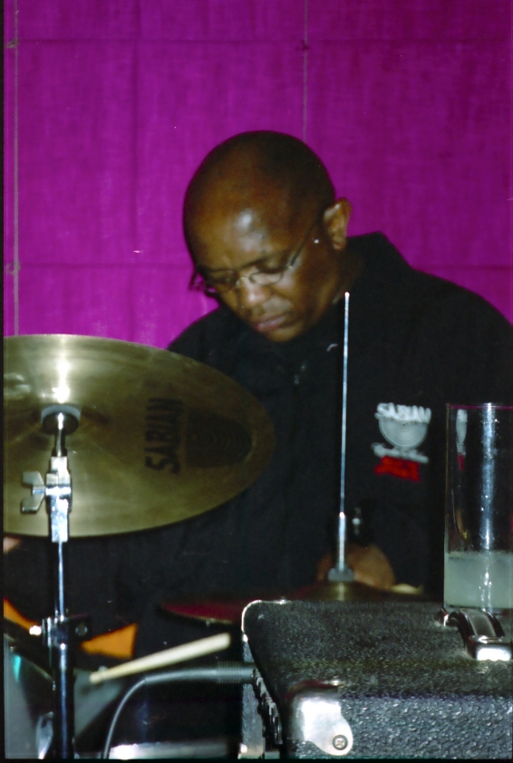 Lulu Gontsana who played in the band “Xhosa Nostra” (among many others). Here he is with the Zim Ngqawana Quartet